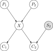 It is often necessary to infer the structure of a Bayesian network from data. Three common approaches to Bayesian network structure learning are constraint-based, score-based, and Bayesian model averaging (see Koller and Friedman 2009, chap. 18). This work uses the K2 structure learning algorithm (Cooper and Herskovits 1992), a frequently used score-based structure learning method. Score-based structure learning methods over discrete variables commonly evaluate candidate structures according to their likelihood against a dataset . In practice, one maximizes the log-likelihood, also known as the Bayesian score, (Cooper and Herskovits 1992).